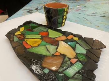 ie gestalten unter fachlicher Anleitung aus bunten Mosaik- und Glasscherben einzigartige Objekte für Haus und Garten. Wir verzieren Teller, Tassen, Kugeln, Untersetzer oder Vasen aus Ton, auch ein flaches, komplettes Bild ist als Werkstück umsetzbar.